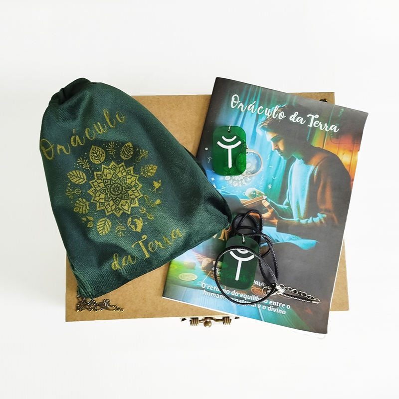 Clicando botão abaixo você vai adquirir o oráculo que vem junto um lindo manual de instrução com 24 páginas, a caixa de madeira, o saco para o oráculo e também dois presentes, um colar e um chaveiro. O oráculo é composto de um lindo jogo de autoconhecimento e auto-aperfeiçoamento com 27 peças na cor verde cristal transparente de alta qualidade.