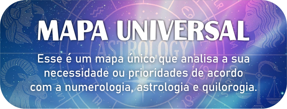 O Mapa Universal é uma ferramenta poderosa e personalizada de autoconhecimento, que combina a sabedoria milenar de sistemas orientais como a numerologia, a astrologia oriental, a quirologia e outras práticas ancestrais, adaptadas às suas necessidades específicas. Diferente de leituras genéricas, o Mapa Universal foca no seu momento atual ou em questões específicas que você deseja explorar, oferecendo clareza, orientação e, quando necessário, sugestões de cura para promover equilíbrio e bem-estar em sua vida.