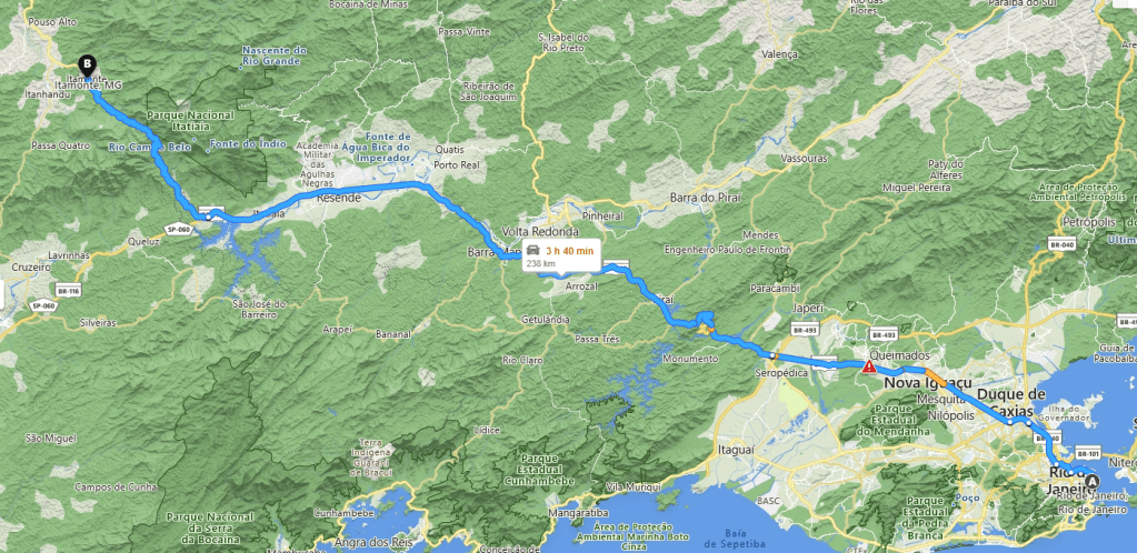 Mapa visual entre Rio de Janeiro e Itamonte